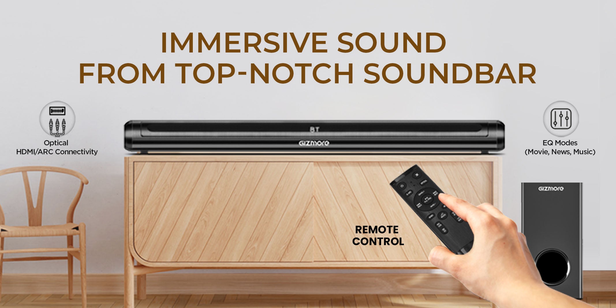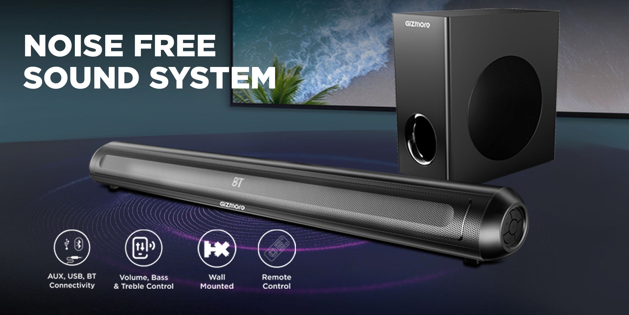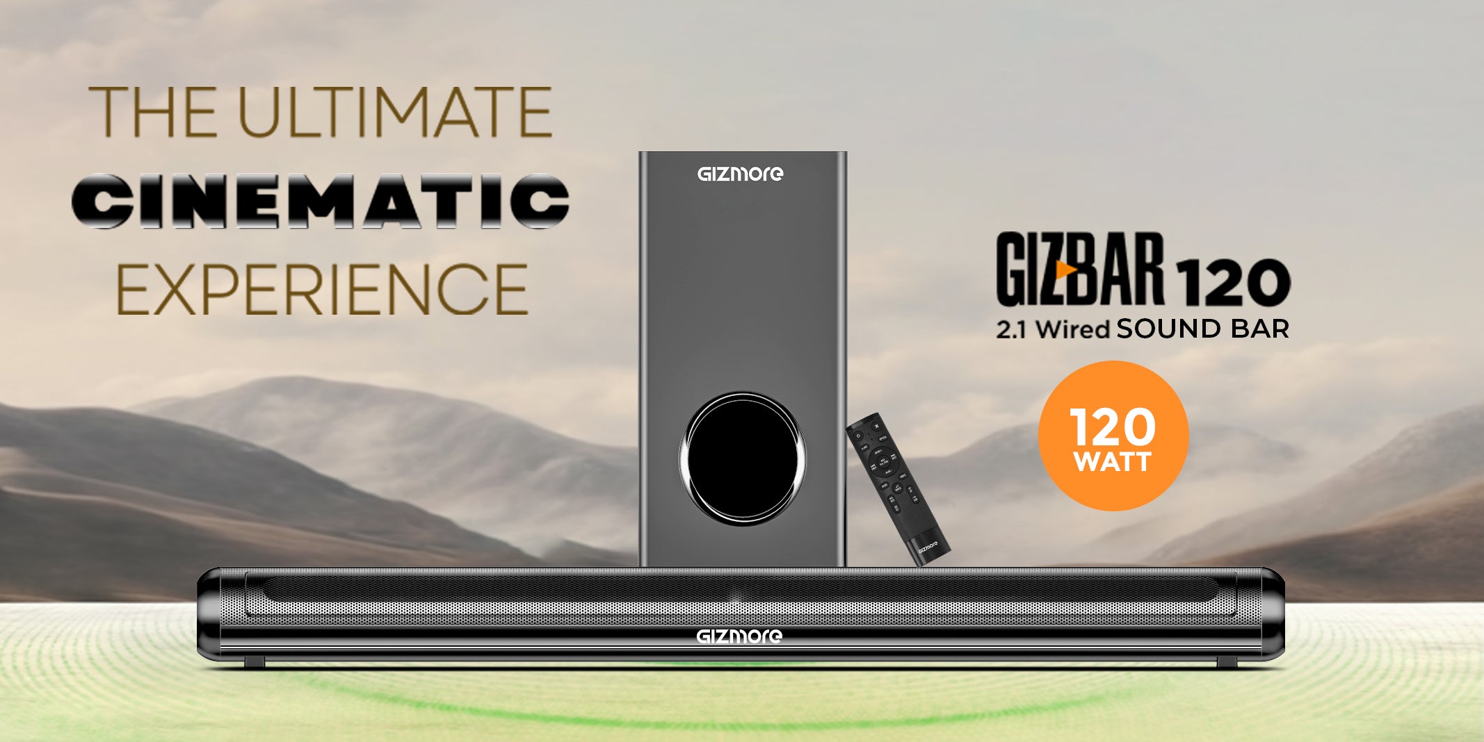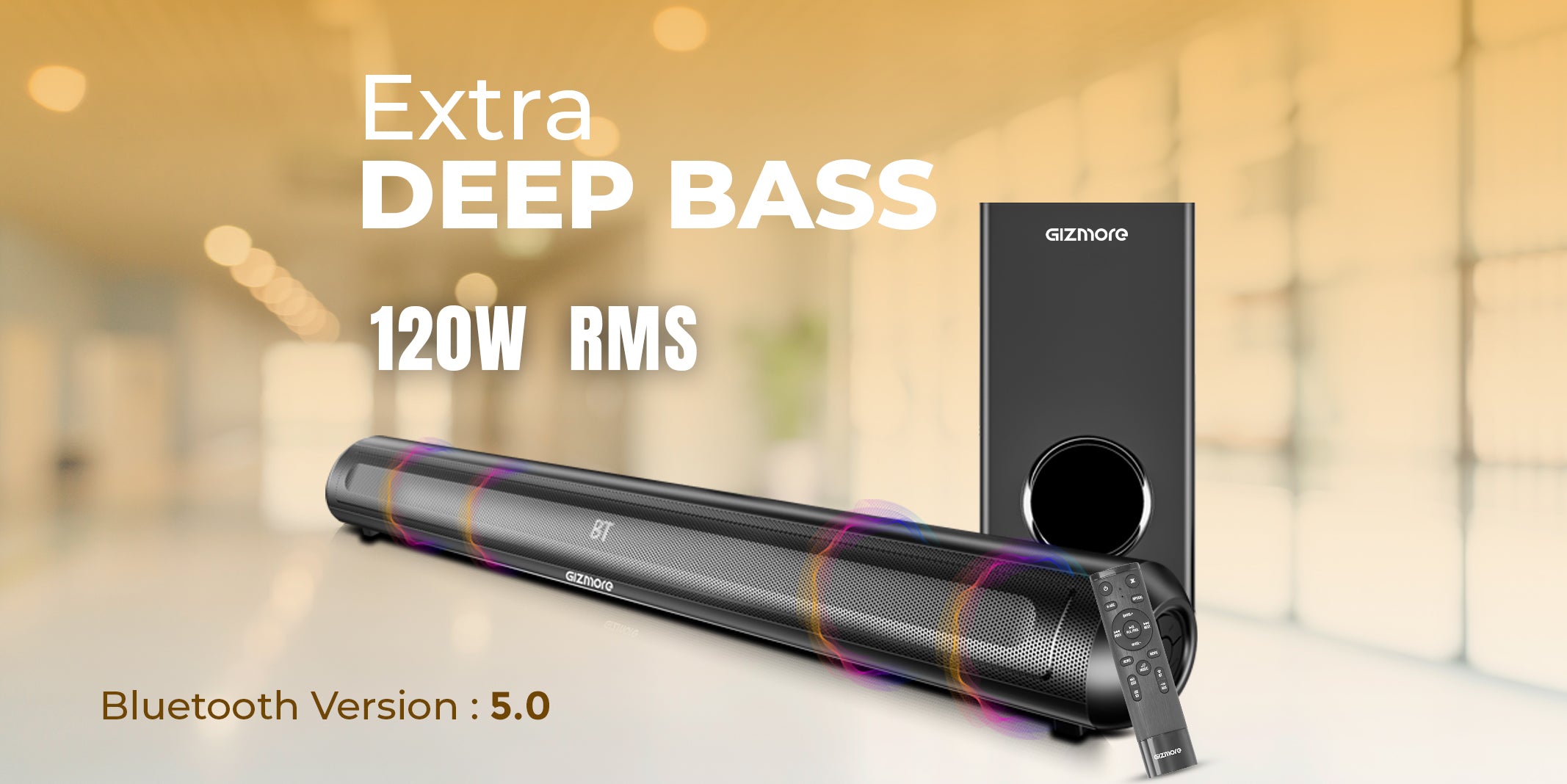 GIZBAR 120W 2.1 Wired Soundbar with Extra Deep Bass Subwoofer