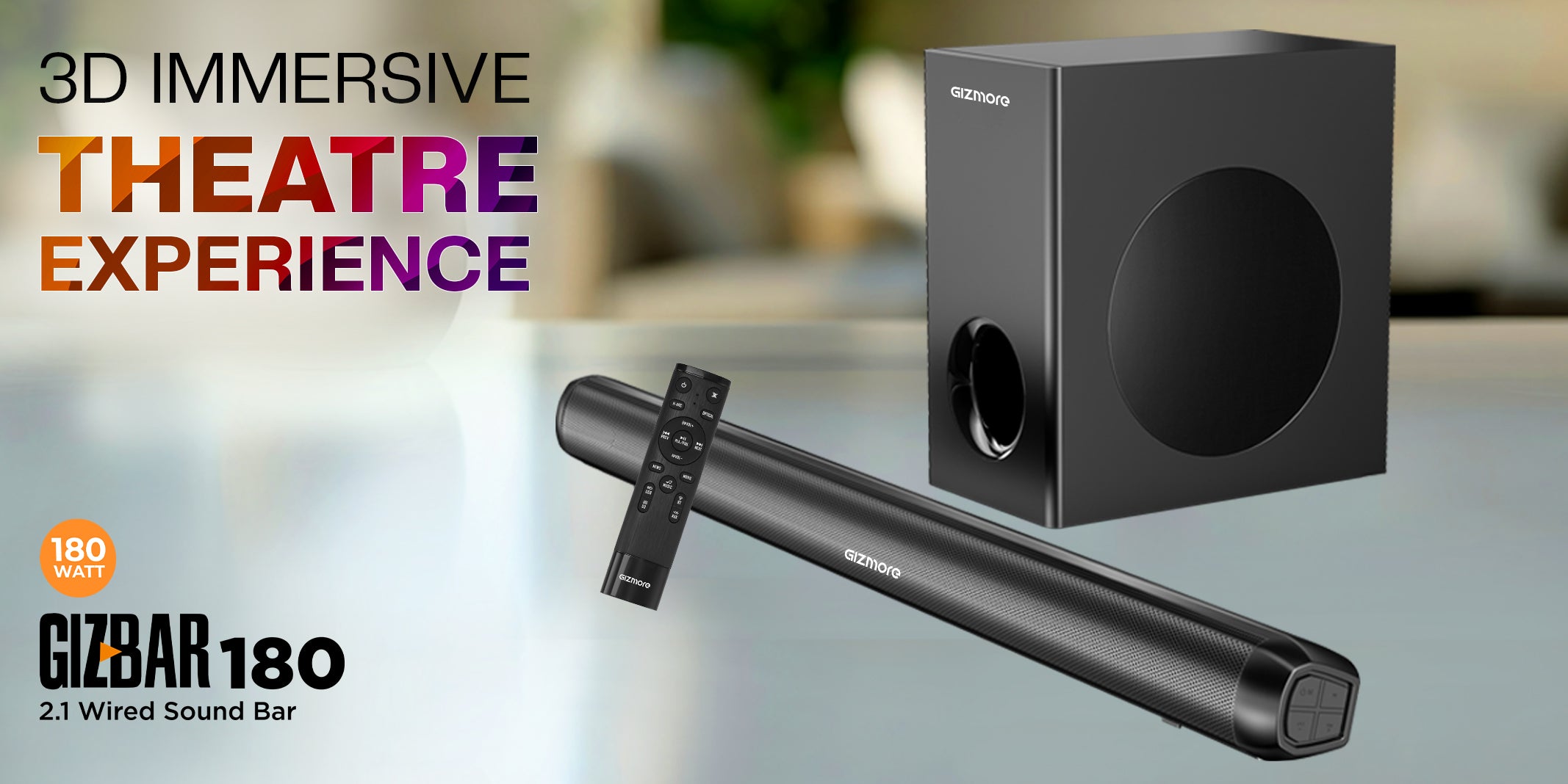 GIZBAR 180W 2.1 Wired Soundbar with Extra Deep Bass Subwoofer