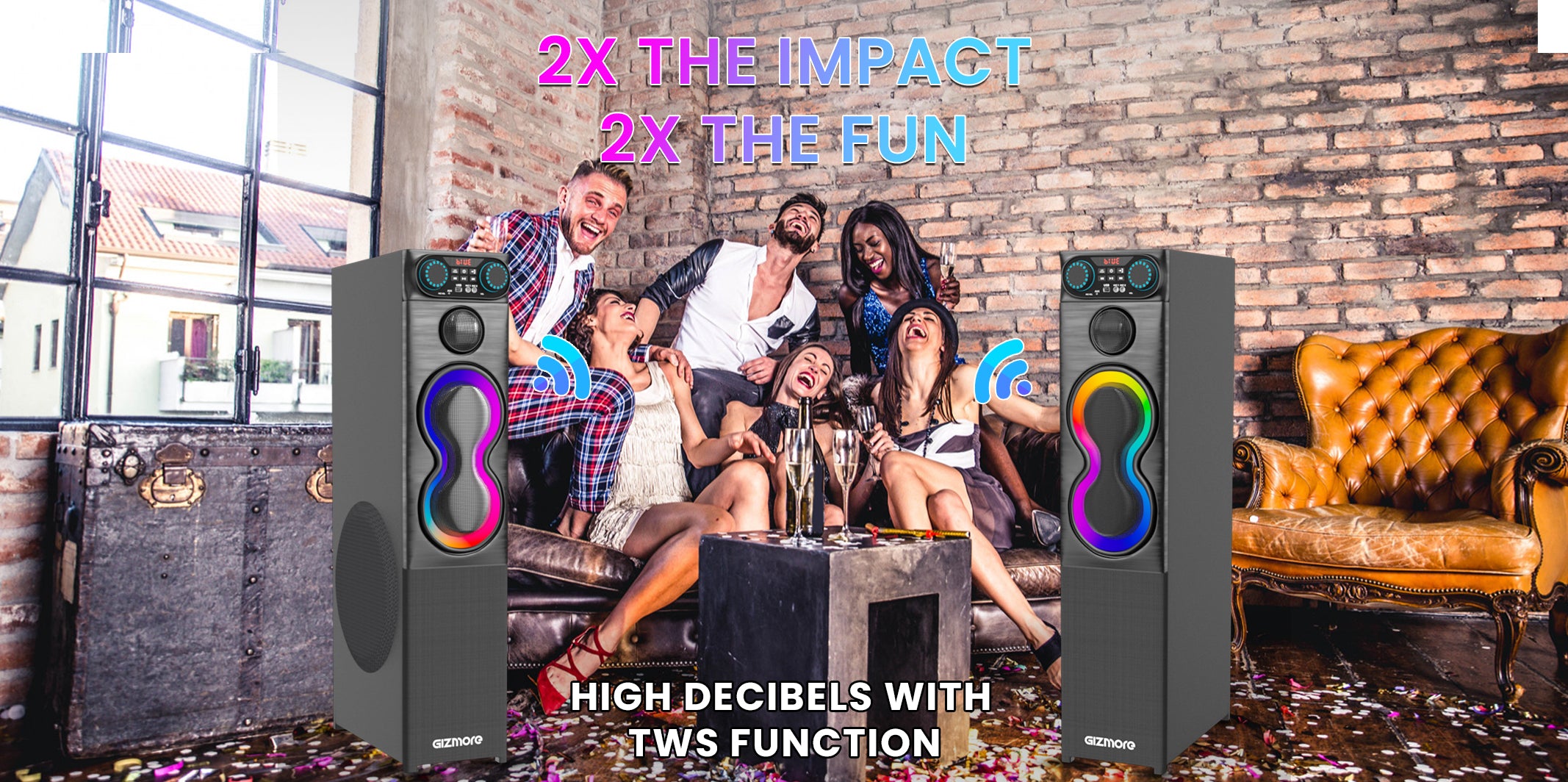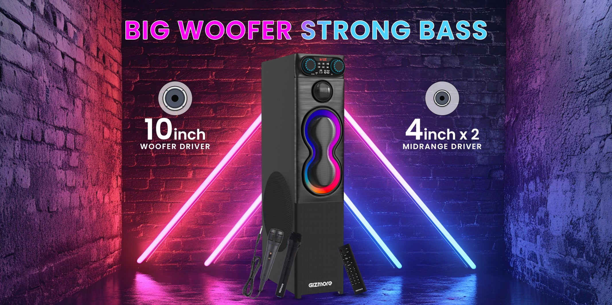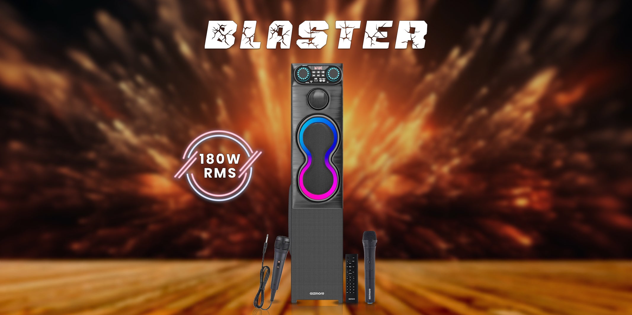 GIZMORE 180W BLASTER Single Tower Wooden Speaker
