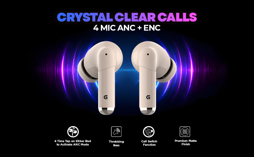GIZMORE AEROPOD 858 ANC + ENC in Ear TWS With 4 Mic, 50 Hours Playtime