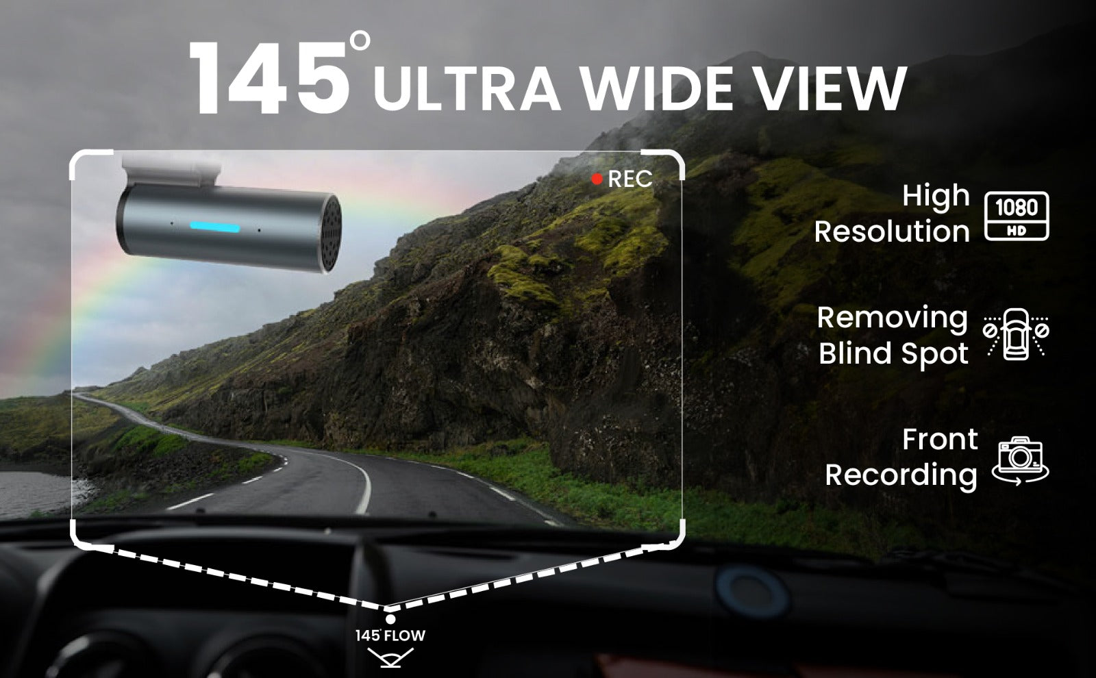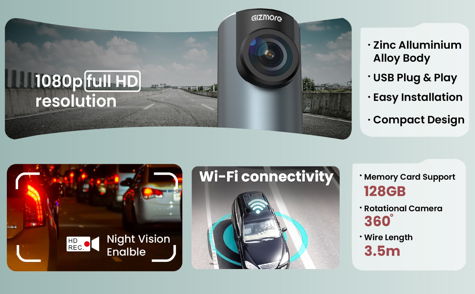 Gizmore Auto Sight Wi-Fi Dash Camera – USB Plug & Play, 360° Rotatable Design, 2MP FHD 1080p Recording, Loop Recording, 145° Wide View, Super Night Vision, Wi-Fi Support with Carkuda App for Easy Viewing