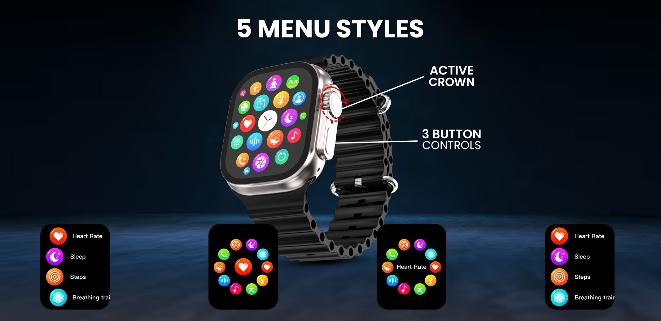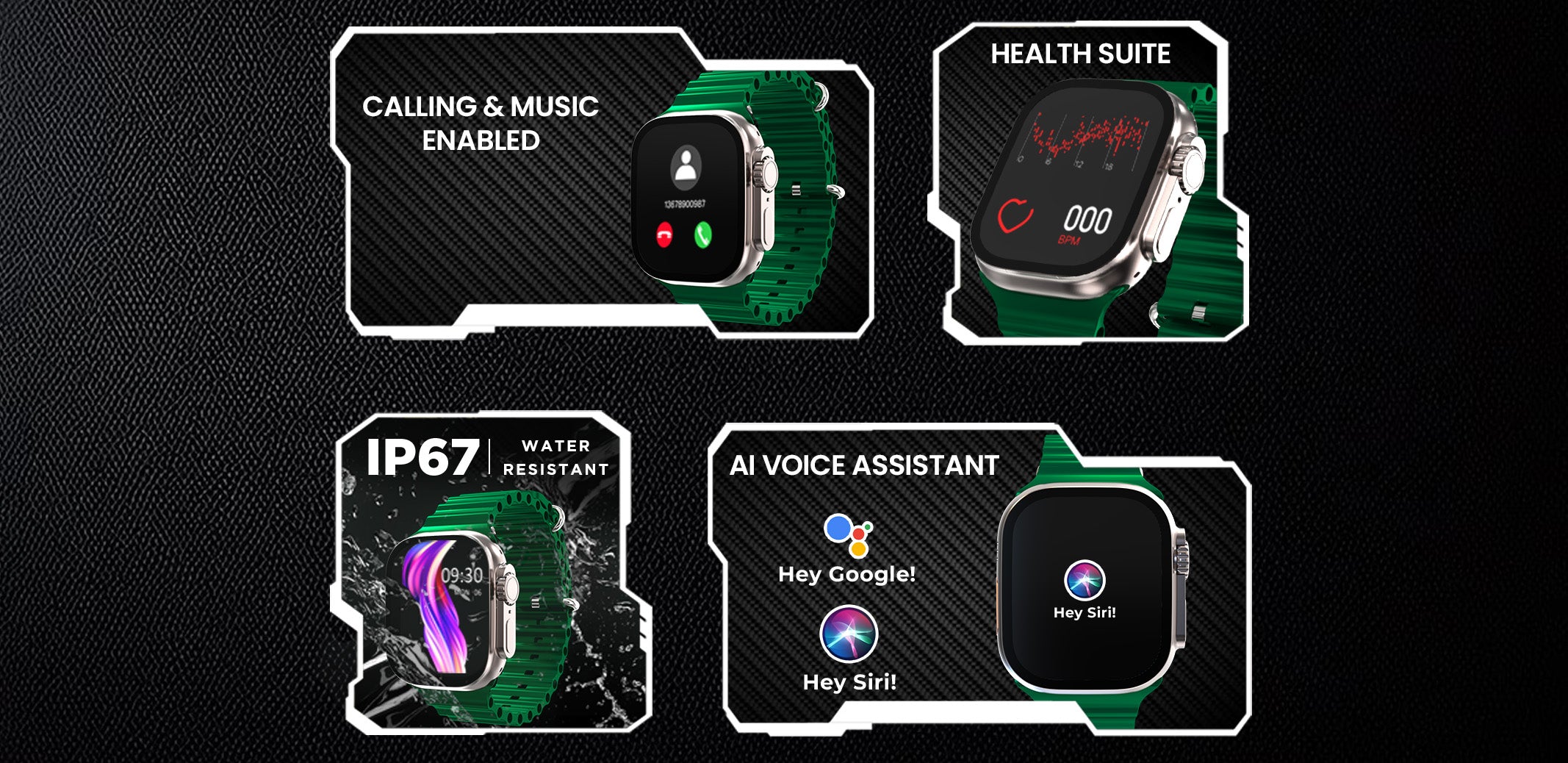 240*283 px | 500 NITS | Wireless Charging | AI Voice Assistance | Multi Sports Modes | IP67 | Health Suite | Privacy lock | 5 Menu Style