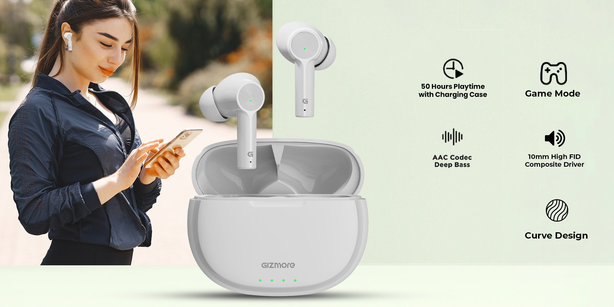 GIZMORE CURVEPOD 855 In-Ear TWS with Up to 50Hrs Playtime