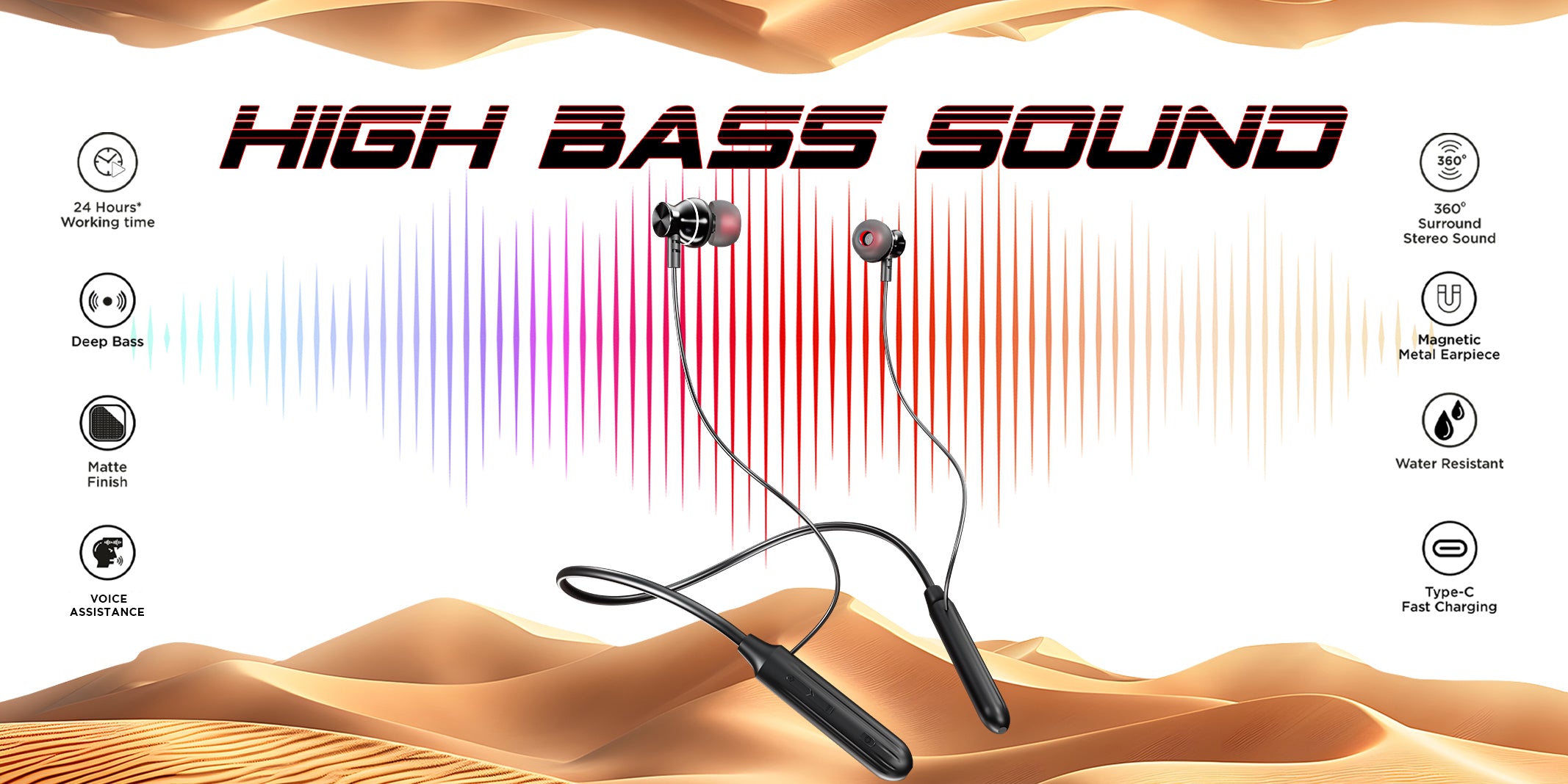 24 Hours Playtime | Deep Bass |Type-C Fast Charging |360 Degree Surround Stereo| Voice Assistant Earphone