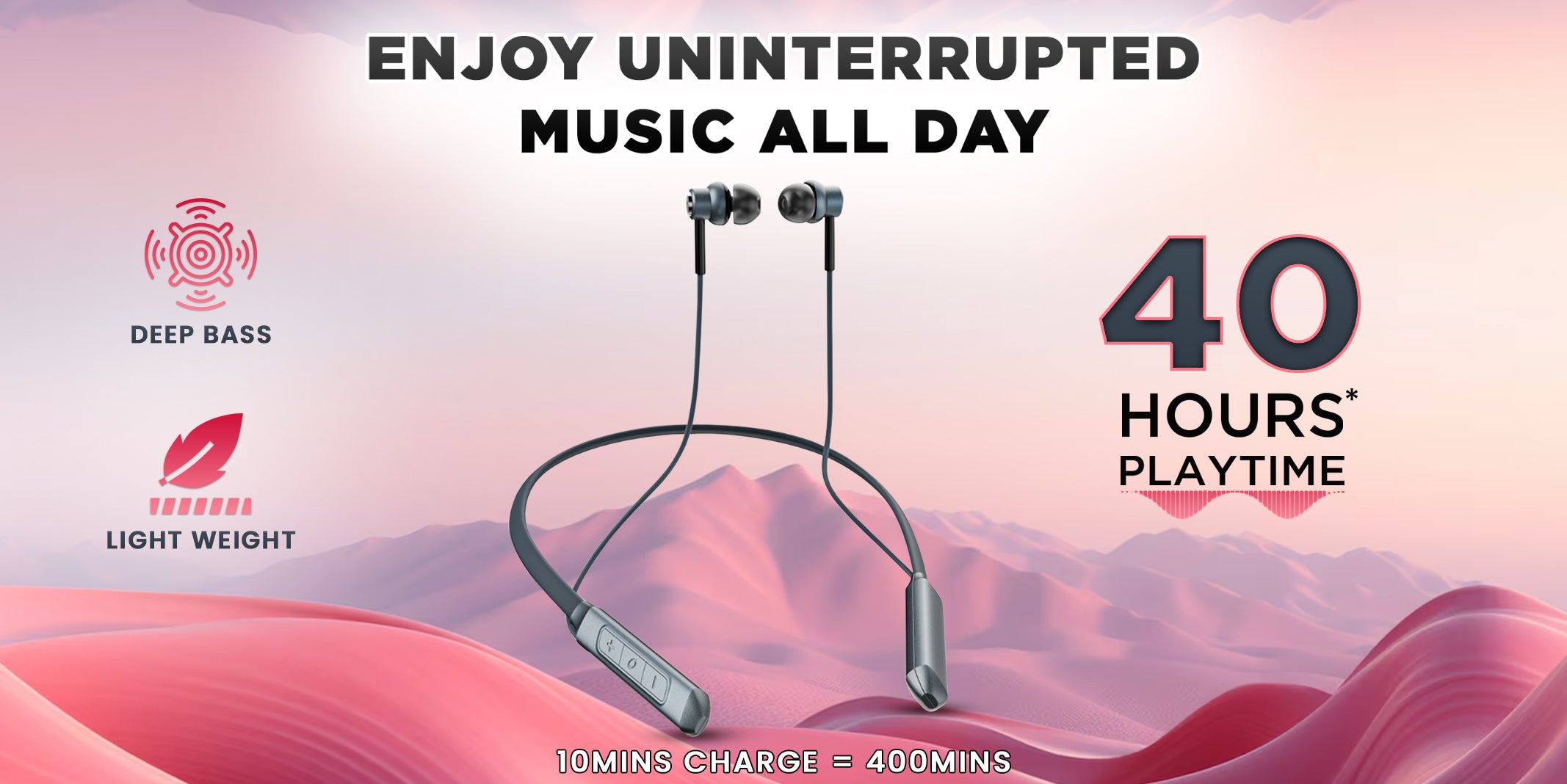 40 Hours Playtime | Deep Bass | Fast Charging | 360 Degree Surround Stereo | Water Resistant Earphone