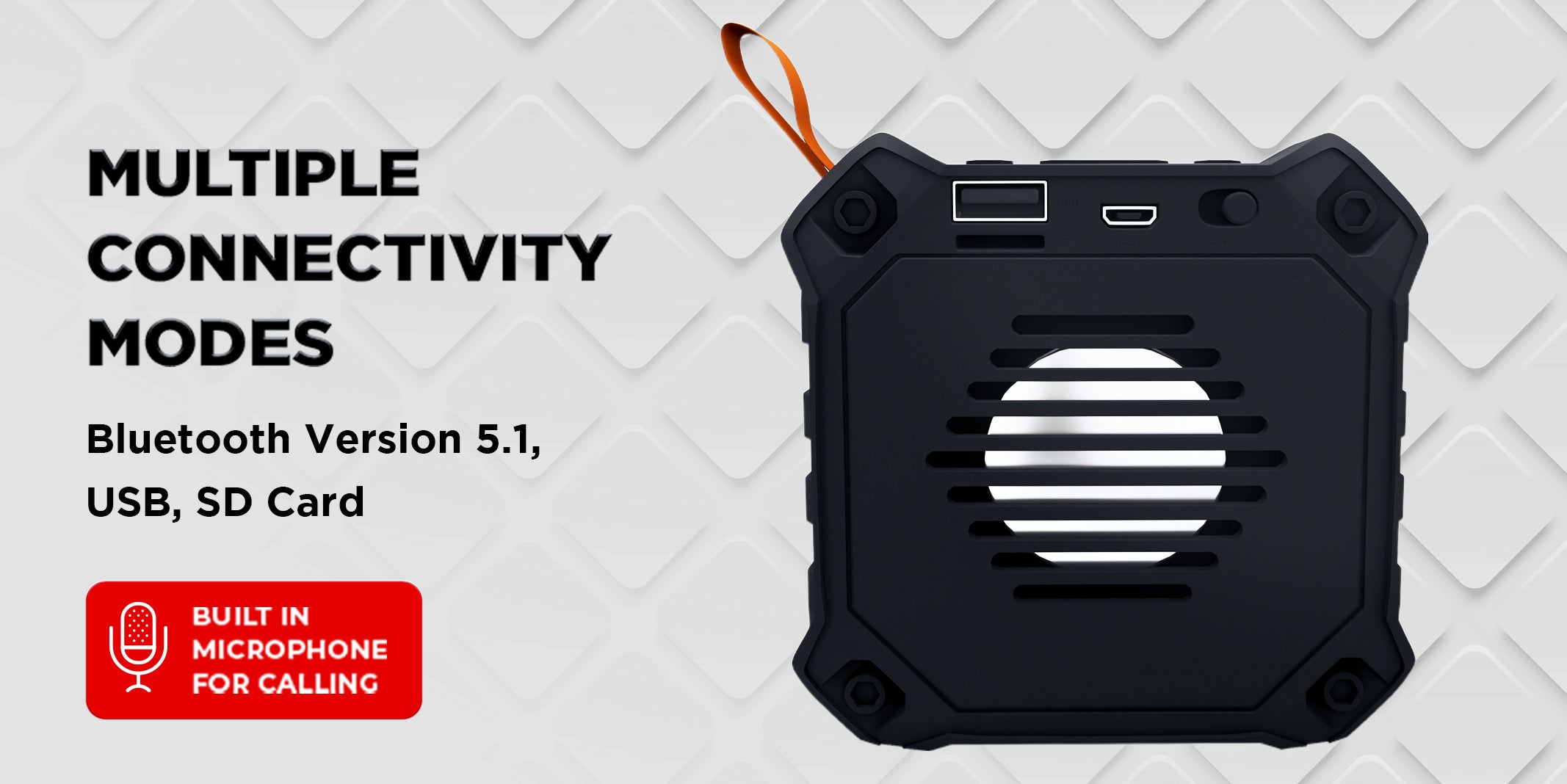12hrs Playback Time | In-Built Mic for Calling | TWS Function | 52mm Dynamic Bass Driver | SD Card & USB Connectivity | Volume Control