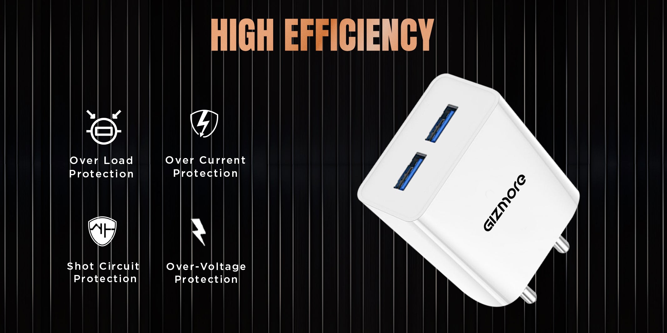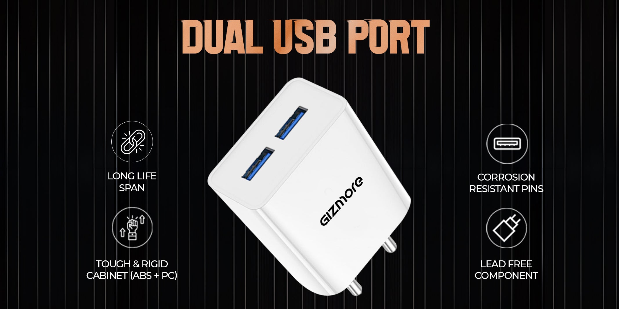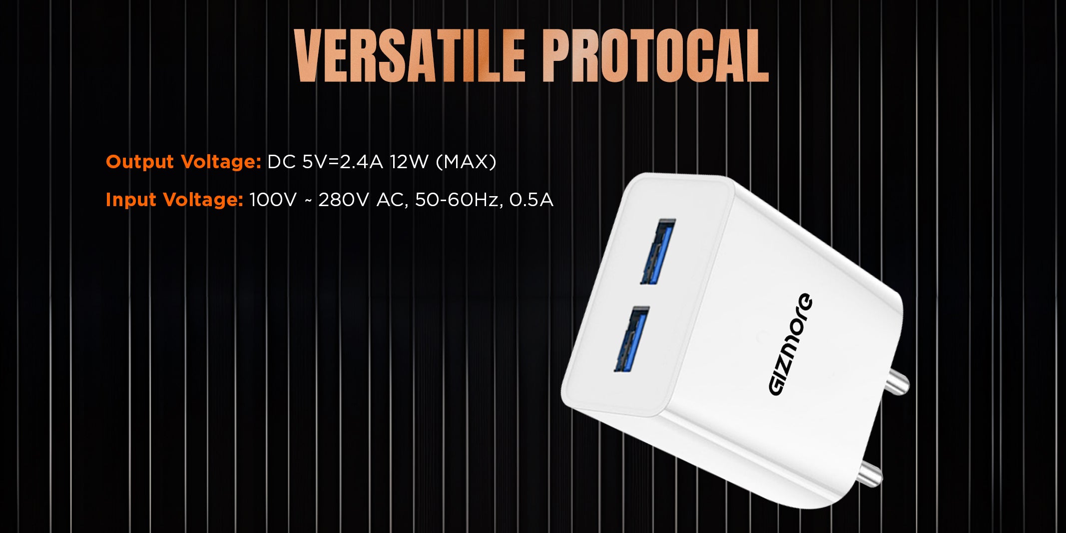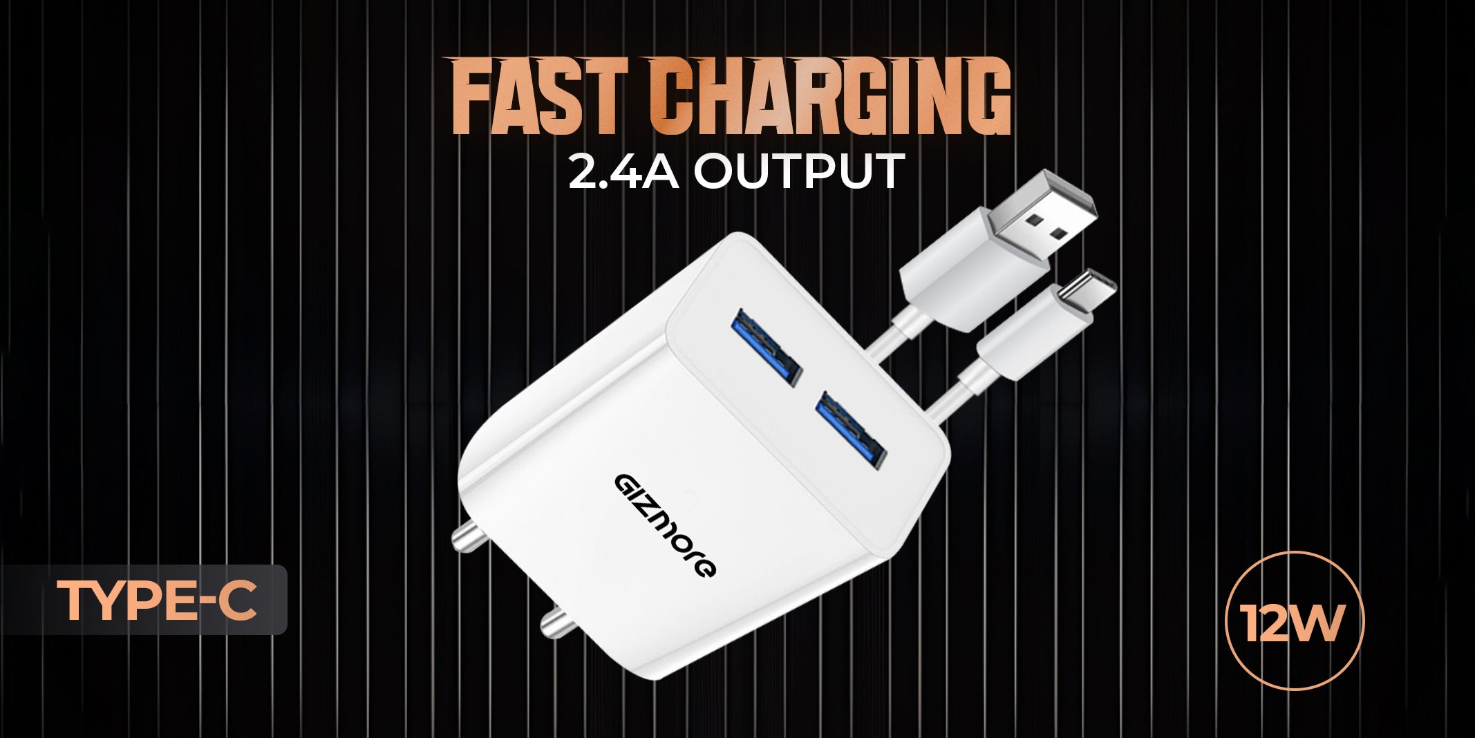 GIZMORE PA604C PRO 5V/2.4A Fast Charging Adapter with Inbuilt Type-C Cable