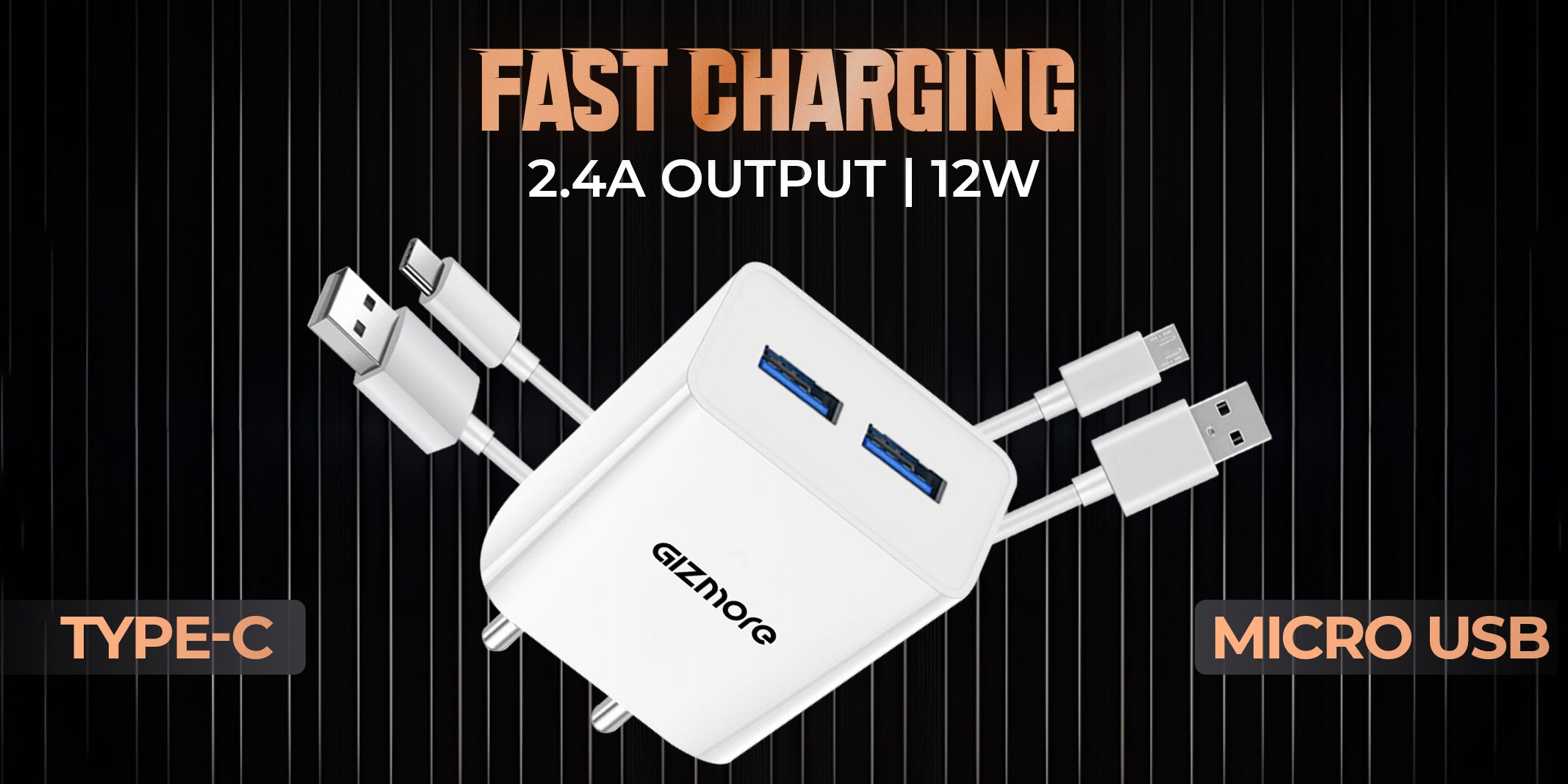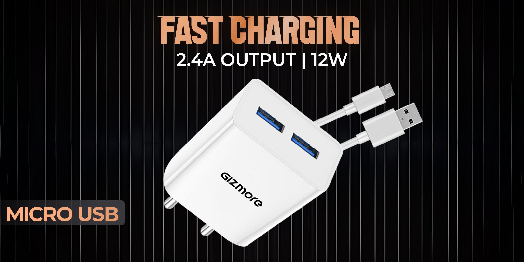 GIZMORE PA604M PRO 5V/2.4A Fast Charging Adapter with Inbuilt Micro USB cable