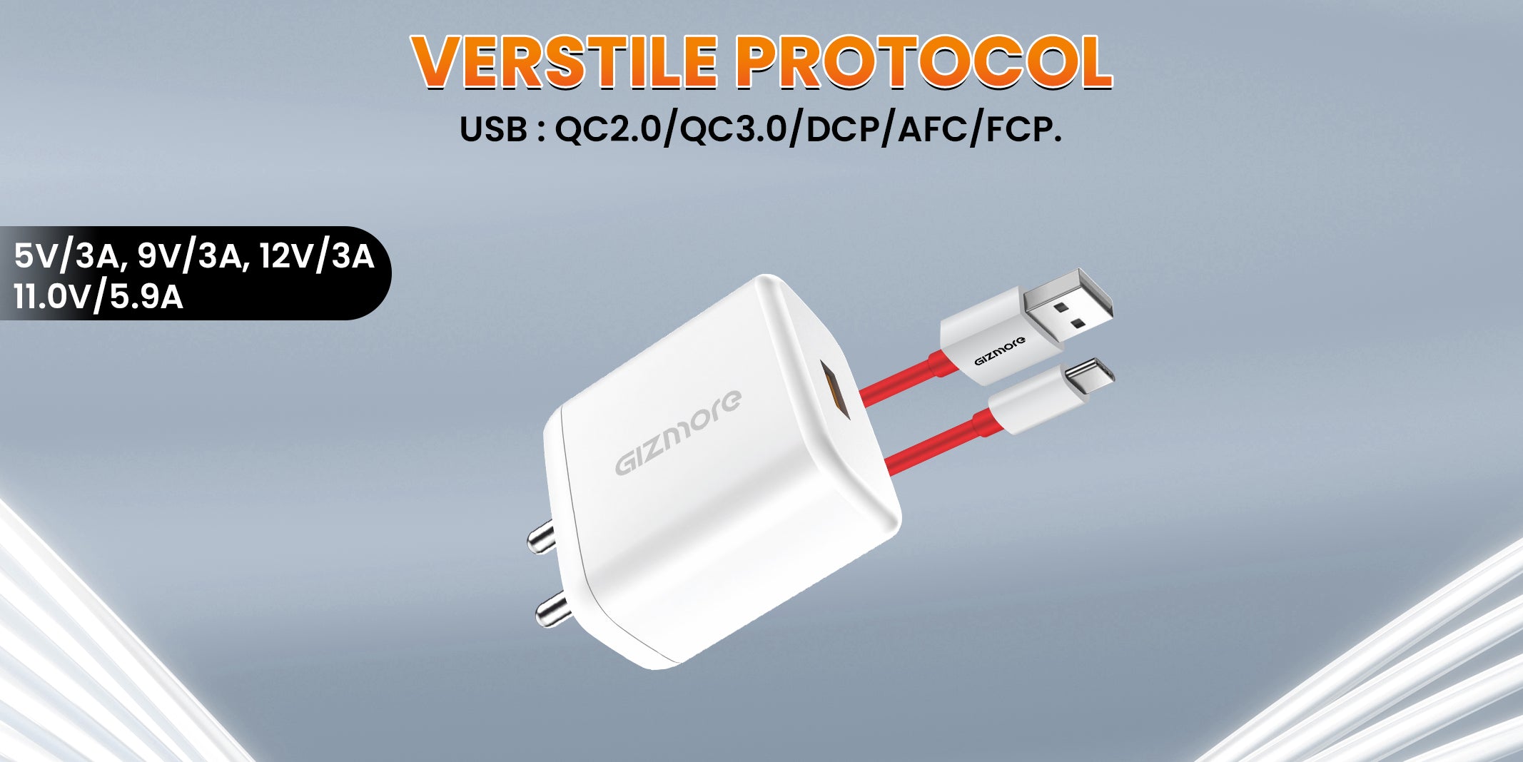 Secure Charging, Versatile Protocol QC2.0/QC3.0/DCP/AFC and FCP with Micro to Type-C Cable