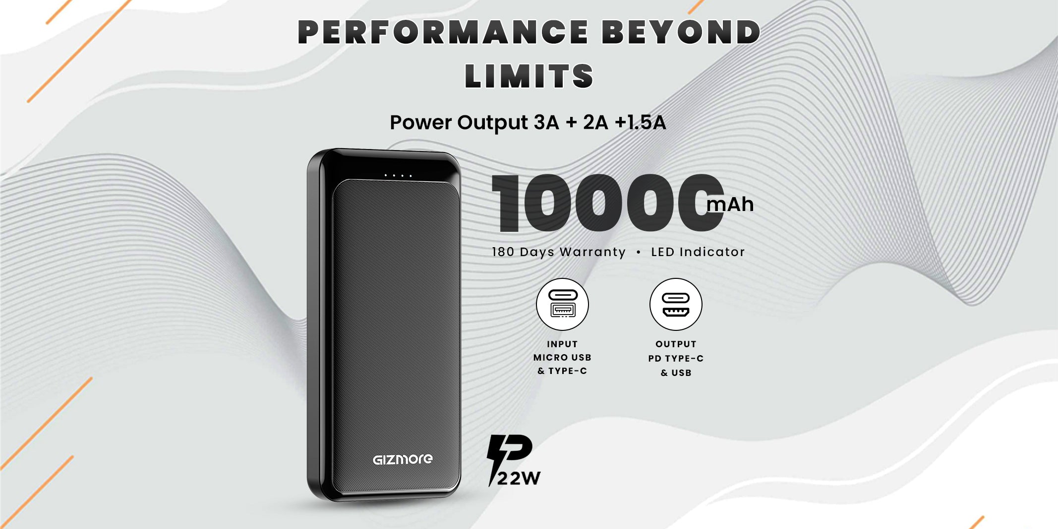 GIZMORE PD10KP4 10000mAh PD 22W Fast Charging Power Bank