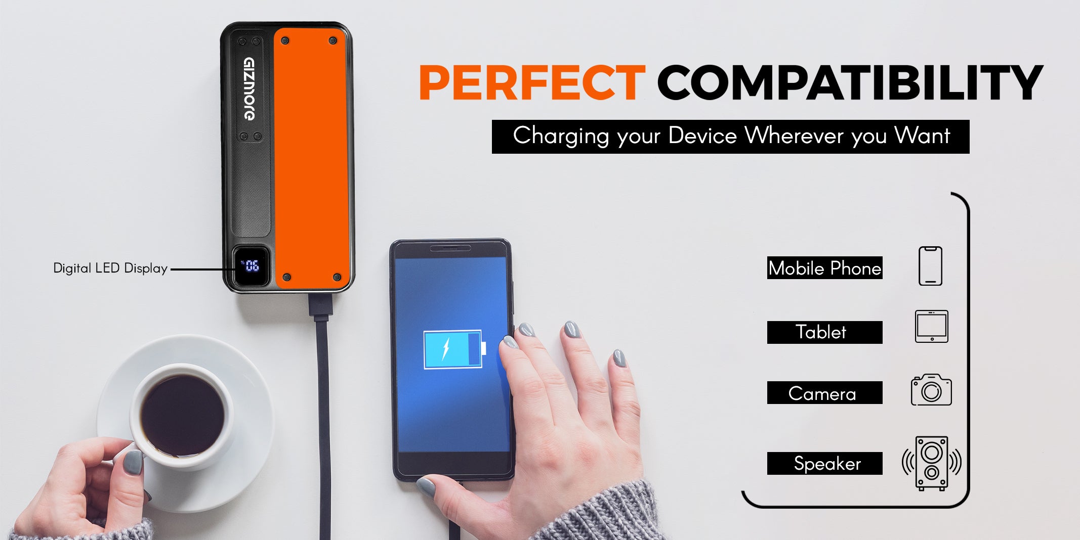 Dual USB Output | Type C (Input & Output) | LED Indicator | Lightweight | Type-C Charging Cable | Over Voltage, Over Current, Short Circuit Protection | Low Power Consumption