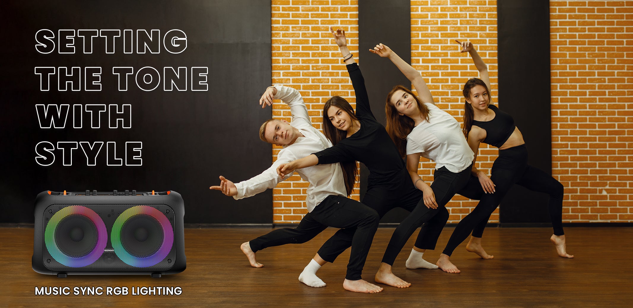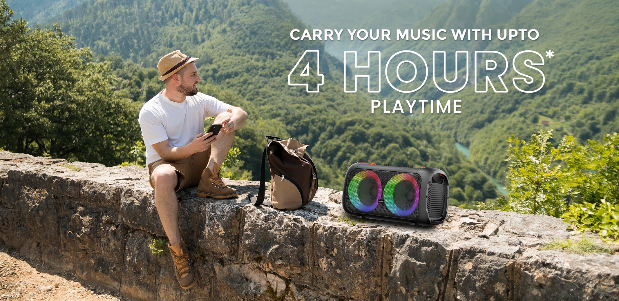 Upto 4 hrs Playtime | 3000mAh Battery| Portable Belt | Digital LED Display | RGB Lights | Wireless MIC | TWS Function | Volume, Bass, Treble MIC, Echo Controls