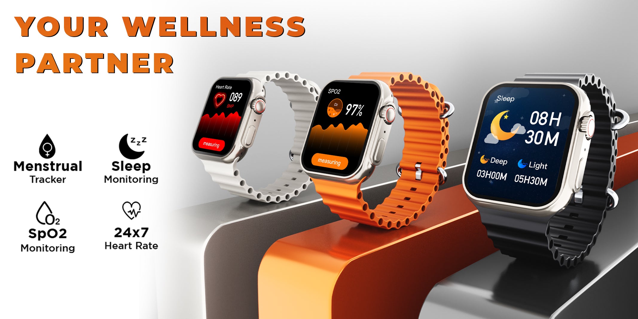 600 NITS | 320 x 385 px | AI Voice Assistant | 3 Button Control | Wireless Charging | Multiple Sport Modes | Heath Tracker